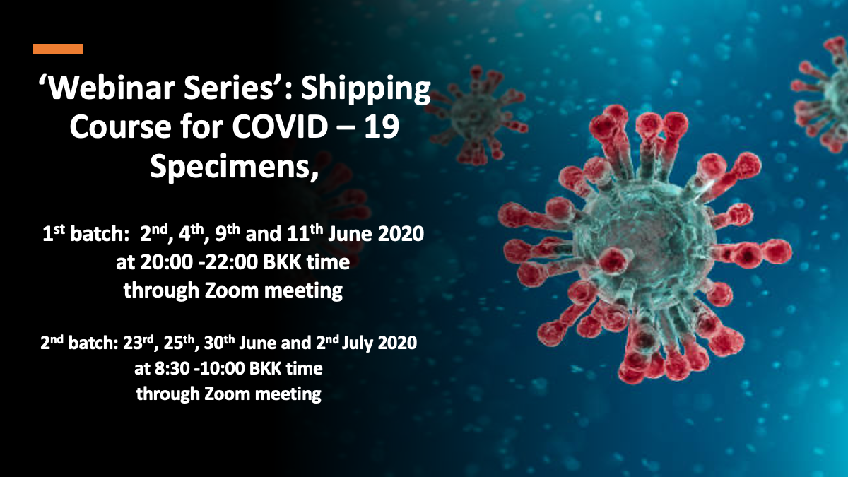 In response to COVID – 19 pandemic, the Webinar Series of hands on course on Infectious Substances Shipping for Local Sample Transport of COVID-19 Specimens will be held on 2nd 4th 9th & 11th June 2020.